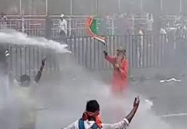 पाण्याचा हा मारा सहन न झाल्यामुळे अनेक आंदोलक माघारी फिरले. पण त्यातही एक आंदोलक हातातला तिरंगा फडकावत या पाण्याच्या मारा सहन करत उभा होता. शेवटी पोलीसांनी पाण्याचा मारा थांबवला, तेव्हा त्यांनी पोलिसांकडे बघत, माझ्यावर आणखी पाणी मारा, मी घाबरत नाही. तुम्ही हातात बांगड्या भरल्या आहात काय, अशा खुणा करायला सुरुवात केली. त्यानंतर पोलिसांनी त्या व्यक्तीवर पुन्हा पाण्याचा मारा करायला सुरुवात केली. मग मात्र काही तरुणांनी या व्यक्तीला घेरले आणि आंदोलन सुरु केले. पाण्याचा मारा सहन करणा-या या व्यक्तीचा हा निश्चयच त्याला रातोरात स्टार करुन गेला. भगवी वस्त्रे, गळ्यात रुद्राक्षांची माळ असलेली ही व्यक्ती नेमकी कोण हा प्रश्न सर्वांना पडला. (Baba Balram Ghosh)